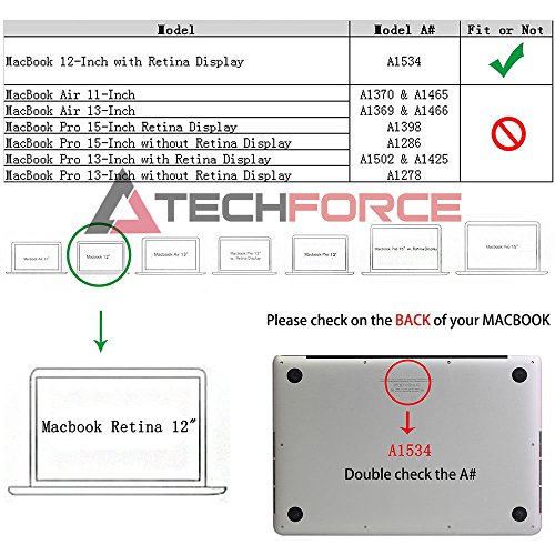Studio : TECHFORCE POWER LTD Publisher : TECHFORCE POWER LTD Binding : Electronics Product Description b>[TECHFORCE® High Quality Soft-Touch Plastic Hard SUPERKASE Macbook Series [Product Features] ? Designed to fit MacBook 12" Aluminum Unibody (A1534) Only. ? Snap on design, easy on easy off ? Fully access to all buttons and features. Plug your charger, cable or headset without removing the case ? Super light-weight with smooth rubberized exterior texture to protect your MacBook from scrapes and scratches. Made from Polycarbonate. [Case Compatible with] MacBook Air 11" Model: A1370 and A1465 Only Please kindly check the model number "A1xxx" on the back of the laptop BEFORE you purchase. [Case NOT Compatible with] ? MacBook Pro 15-Inch with Retina Display (A1398) ? MacBook Pro 15-Inch without Retina Display(A1286) ? MacBook Pro 13-Inch with Retina Display (A1502 and A1425) ? MacBook Pro 13-Inch without Retina Display (A1278) ? MacBook Air 11-Inch / 13-Inch (A1370 and A1465) [Installation] 1. Start with the top cover of the case. Clip the 2 clips at the back of the MacBook first. 2. Pull the case slightly to the front until the 3 clips "clicks". 3. Turn around the MacBook. Clip the bottom cover on the back of the MacBook first. 4. Pull the case slightly to the front until the clips "clicks". Learn more at www.techforcepower.com ***Apple MacBook are registered trademarks of Apple, Inc. Products are Apple compatible and not endorsed by Apple, Inc.