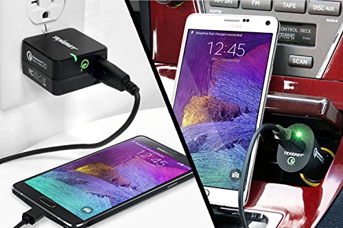 -. Feature : Tenergy Fast Chargers with Qualcomm® Quick ChargeTM 2.0 Technology - Our Tenergy Turbo USB Universal Charger & In-Vehicle Adaptive Fast USB Car Charger are our fastest charger ever. Enabled and certificated by Qualcomm Quick Charge 2.0 technology, it pumps up to 18 Watts into your compatible smart phone or tablet, reducing charge time by up to 75% compared to conventional chargers. / Universal Charging with LED Indicator - Don't have a Quick Charge-enabled device yet? No problem. Tenergy Chargers are fully compatible with other smart phones or tablets will charge at their standard charging speed. / 6ft Charging/Sync Cable - Each Charger comes with a premium quality charging/sync cable (6ft/1.8m long USB to Micro USB). / Supported devices: Droid Turbo by Motorola, Google Nexus 6, HTC One (M8), HTC One (M9), LG G4, Moto X Style, New Moto X by Motorola, Samsung Galaxy Note 4, Samsung Galaxy Note 5, Samsung Galaxy Note Edge, Samsung Galaxy S6, Samsung Galaxy S6 Edge, Sony Xperia Z3, Sony Xperia Z3+, Sony Xperia Z4, Sony Xperia Z5 CHECK PRODUCT DESCRIPTION FOR MORE (SUPPORTED DEVICES UPDATE OCCASIONALLY) / Guaranteed Safety - Built with premium industrial grade materials and cutting-edge design, this product is FCC & RoHS certified to ensure complete safety and reliability.