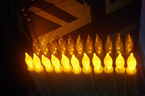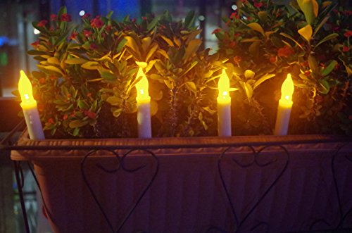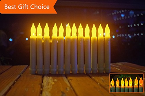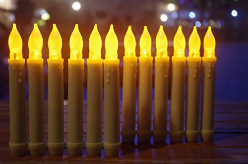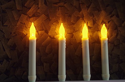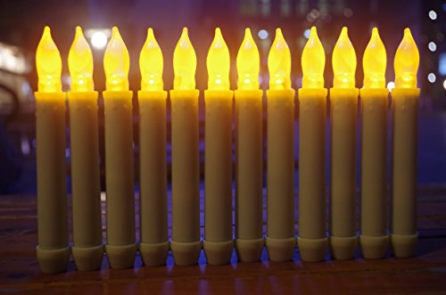 LED-Magic(TM) Set of 12 Flameless Ivory Mini Wax Dipped Flickering Amber LED Battery Timer Taper Candles