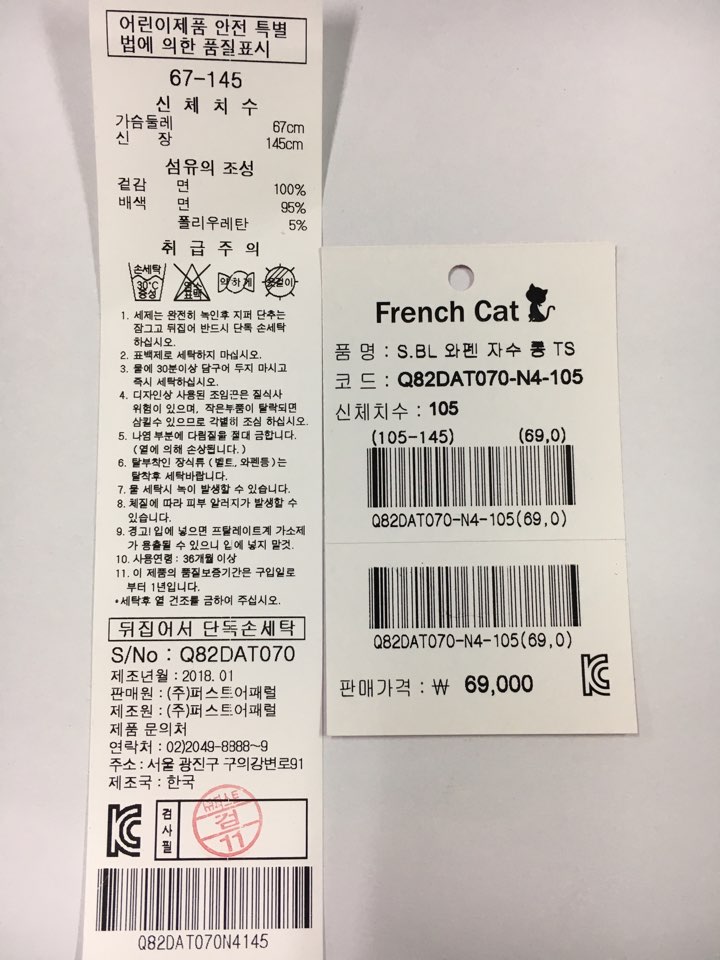 제조자 : 퍼스트어패럴