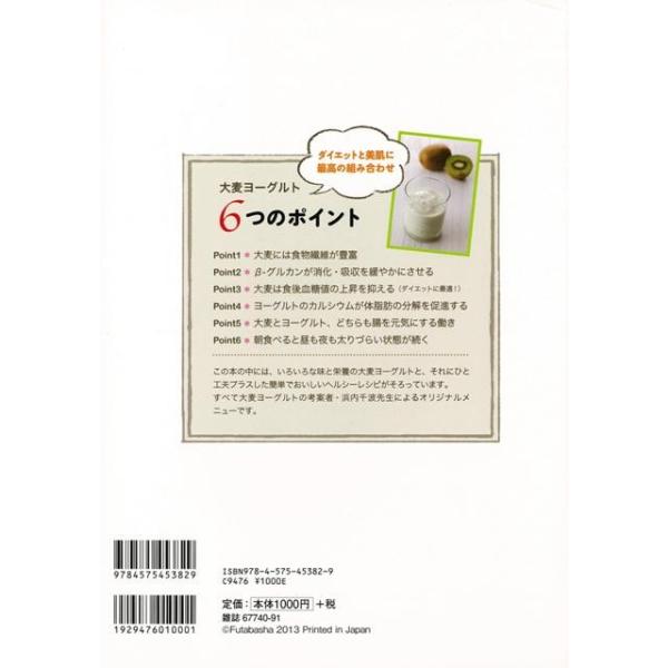 【商品基本情報】 商品名称:スーパー健康食大麦ヨーグルト 著者/出版社:浜内 千波/浜内 千波 初版発行日:2013/07/04 サイズ:B5判 ページ数:79 ISBN/JAN:9784575453829/4528189425286