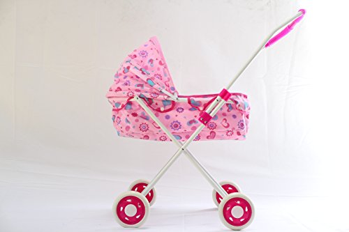 -. Feature : White frame stroller with pink handles, beautiful pink patterned fabric with seat belt. / Fits up to 13-inch doll. Approximate dimensions while in use: 21.5''H 9.5"W 19"D. / Easy to assemble, fold, and store. No tools needed! / Encourages nurturing and role-play in children. / Safety tested and approved for children (ages 3+).