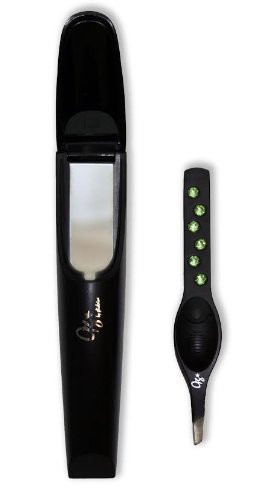 LED Tweezer with Green Swarovski Crystal in Stylish Carry Case with 3x Magnification Mirror by GIGI Beautiful