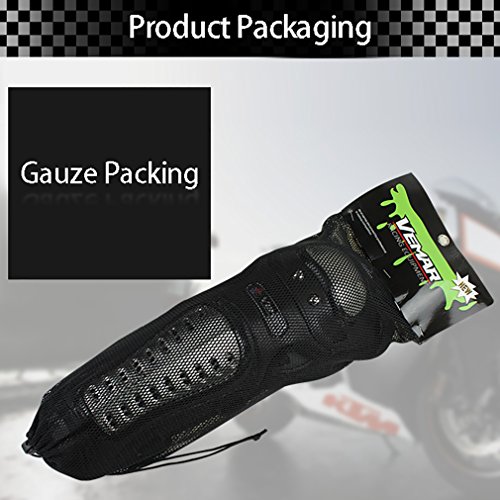 -. Feature : Including:1 Pair of Knee Shin Pads (2 PCS) & 1 Pair of Elbow Pads (2 PCS) / High impact PP & steel shells with mesh fabric & foam pads allows for a greater degree of comfort and protection for knees and shins / Adjustable elastic quick-release straps for optimum fit and easy removal. / Multiple large vents in plastic shells and foam for maximum comfort and ventilation / Dimension of elbows: approx. 31x12cm/12.2''x4.7" ; Dimension of knees: approx. 47x15cm/18.5''x5.9".