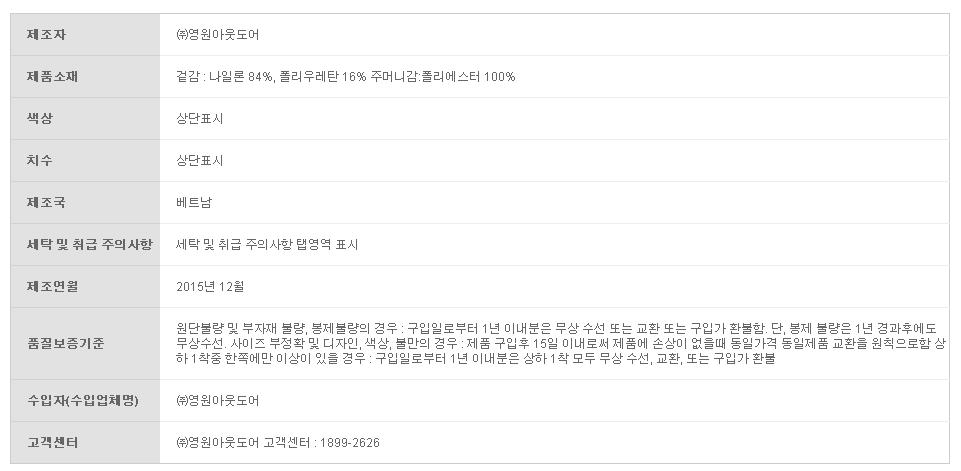 NYLON SPAN 원단을 사용하여, 생활 방수기능과 스트레치가 우수합니다.
