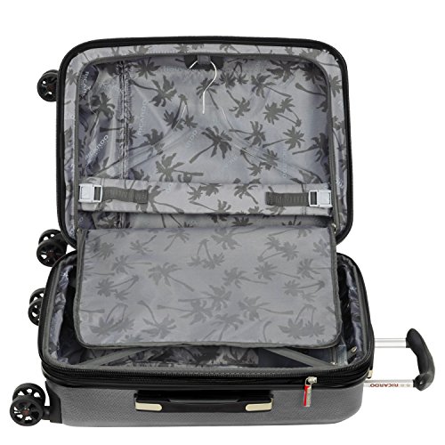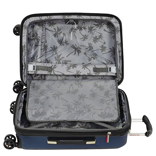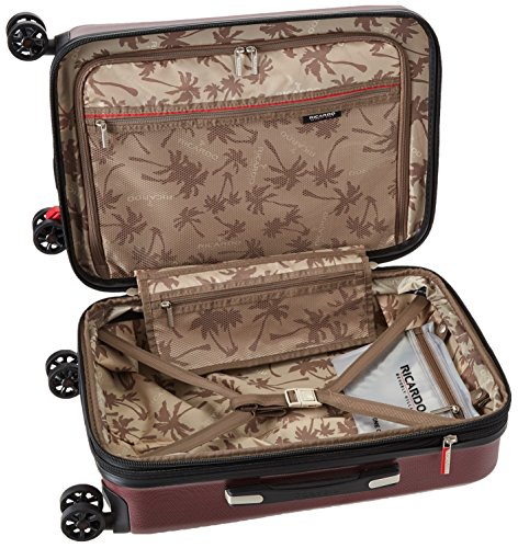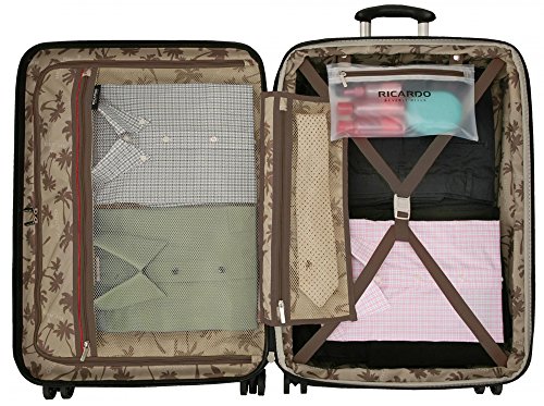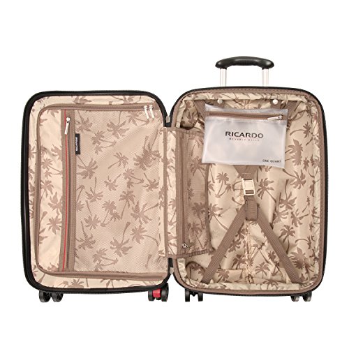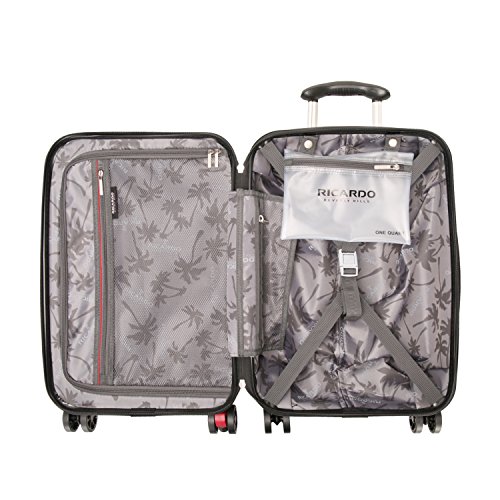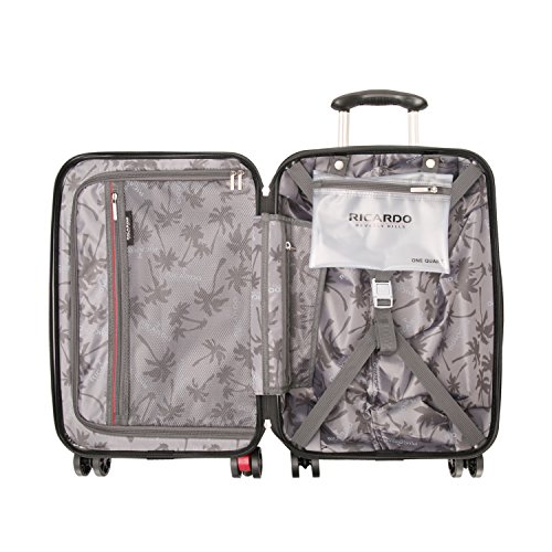 Studio : Ricardo Beverly Hills Publisher : Ricardo Beverly Hills Binding : Apparel Product Description Web exclusive! Keep essentials secure and organized for traveling with a Ricardo Beverly Hills San Clemente Hardside 21" Carry-On Spinner. Lightweight and rugged, this luggage piece features oversized spinner wheels that are on an innovative locking system where you simply push the button and the case stays by your side. On the inside, youll find a fully zippered panel that includes a suiter loop and padded bar to prevent wrinkles. 0