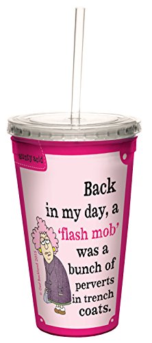 Tree-Free Greetings 16-Ounce Double-Walled Cool Cup with Reusable Straw, Aunty Acid Flash Mob Perverts (CC98395)