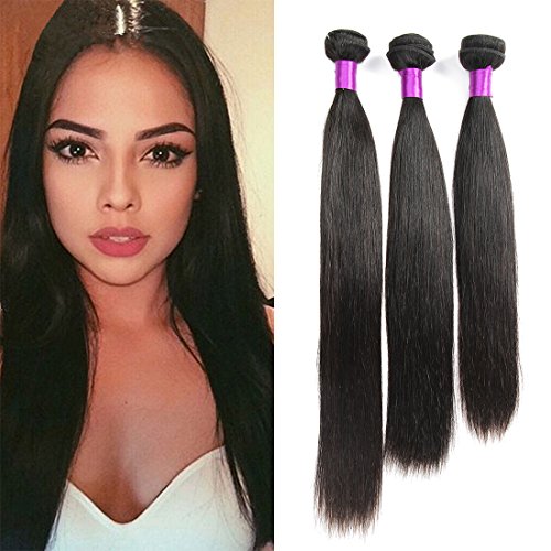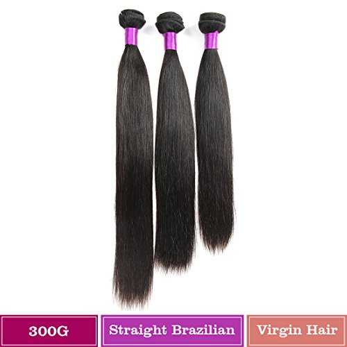 FeiBin 18" 20" 22" Inch 3 Bundles Brazilian Virgin Hair Straight 100% Unprocessed Human Hair Natual Black Color 300g Total
