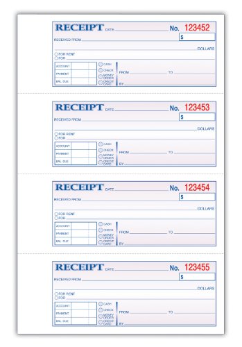 Adams Hardbound Receipt Book, 7.63 x 11 Inches, 3-Part, Carbonless, White/Canary/Pink, 4 Form Sets per Page, 200 Sets per Book (TCH1185)