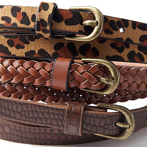 Studio : La Redoute Collections Publisher : La Redoute Collections Product Description Belt in synthetic material. Silver-coloured metal buckle. 3 waist sizes in cm. Sold in packs of 3 (1 brown 1 plaited brown 1 panther print). Fabric content and details: Fabric: synthetic Width: 1cm Brand: Anne Weyburn Ref:4724989-000-9168281-00105-1 0