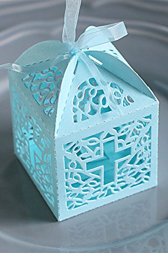 -. Title : 12 pc blue cross laser cut wedding bridal favor box christening baby shower / baptism favor gift box/religious gift box 3.5 " x 2.5" x 3.5"