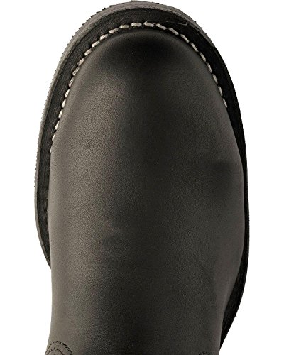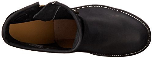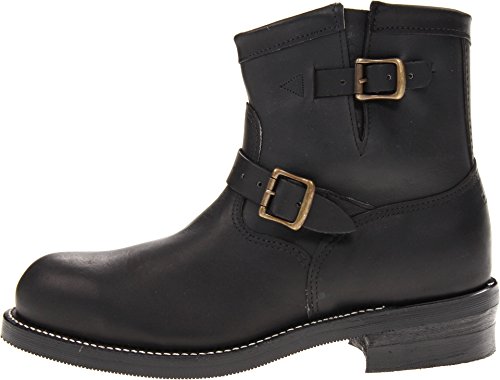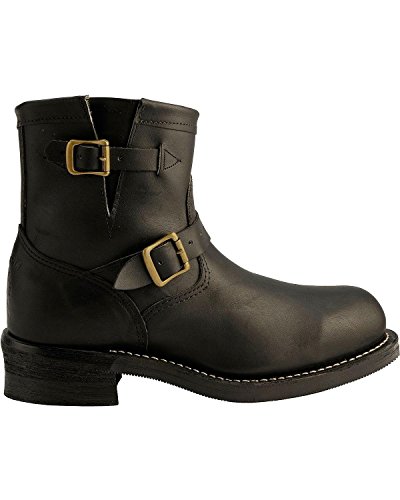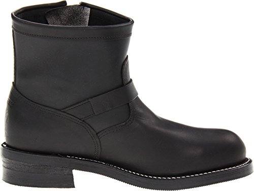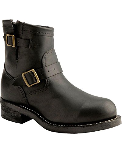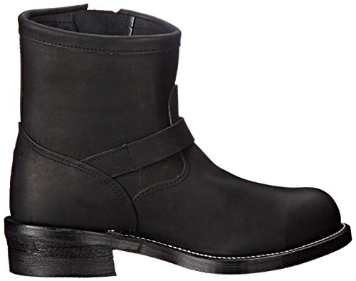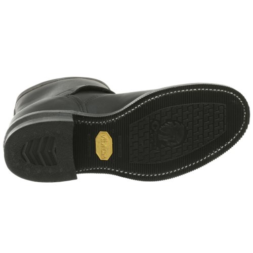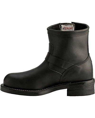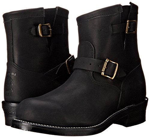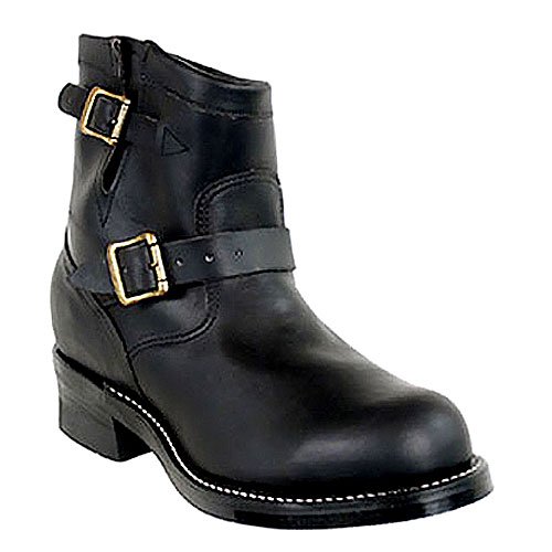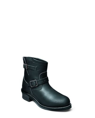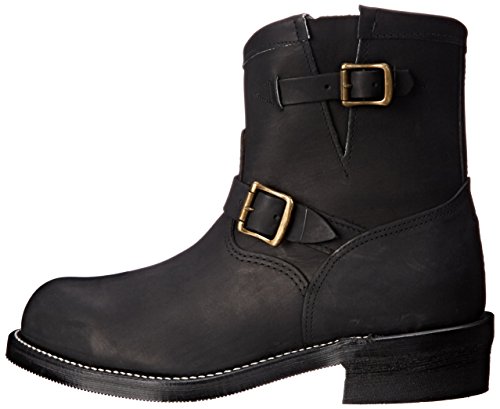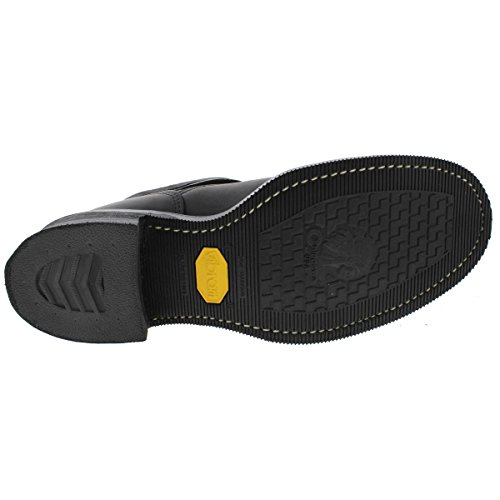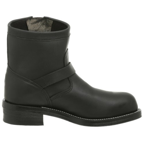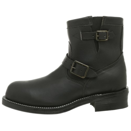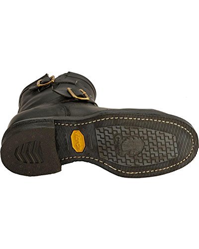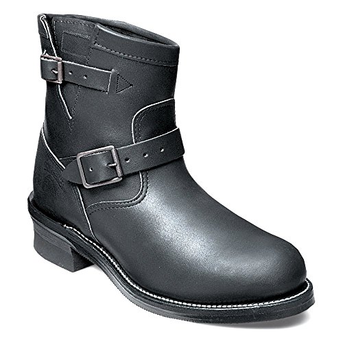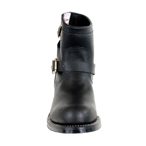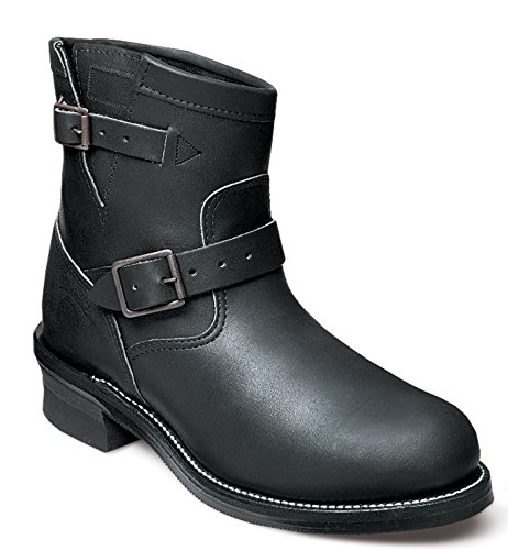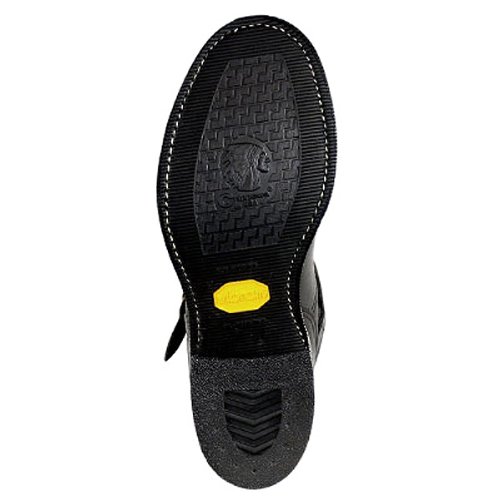 Product Description Chippewa® Vibram® 7" Steel Toe Engineer Boots are NON-basic black! When it comes to all the comfort and superior quality they offer... they're black, but don't call them "basic"! Here's the proof: Uppers are thick leather, with high oil content to repel water and the elements; Vibram Chippewa yellow plug nitrile rubber outsole, the most durable made. It's oil, fuel and chemical resistant; Rubber midsole adds shock-absorbing comfort. Triple ribbed steel shank adds solid support; Goodyear leather welt construction adds durability, and they're stitched, not glued, making the soles completely replaceable; Texon insole wicks moisture away from the foot to keep as dry as possible. It's anti-macrobial preventing bacteria growth; Non-insulated for moderate temperatures. Leather lining for soft, natural comfort; Non-tarnishing buckles on the adjustable instep and calf straps, stay looking shiny-good; ASTM-approved steel toe safety. State Width and Size. Get yours today! Men's Chippewa Vibram 7" Steel Toe Engineer Boots, Black