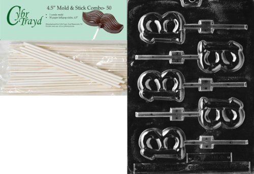 Cybrtrayd 45St50-L010 13 Lolly Letters and Numbers Chocolate Candy Mold with 50-Pack 4.5-Inch Lollipop Sticks