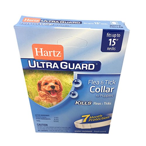 Studio : Hartz Ultraguard Publisher : Hartz Ultraguard Binding : Misc. Product Description The Hartz Advanced Care 2 in 1 Flea and Tick Collar kills both ticks and fleas for 7 months. Hartz Ultraguard Flea Tick Dog Collar Easily Adjustable Fits Necks Up to 15 Inches. It kills the Rocky Mountain Wood Tick carrier of Rocky Mountain Spotted Fever and the Deer Tick which may carry Lyme Disease. These collars are available in various colors and are waterproof. Swimming rain and getting them wet do not reduce efficacy. For use on puppies 6 weeks of age or older. Each Package Comes 2 Flea Collar for Puppies. Pictures may be magnified to show detail. For further information on size, color, conditions please refer to the item description or please ask a question before buying. 0