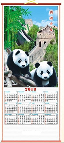 2018 Chinese Wall Scroll Calendar with Picture of Panda