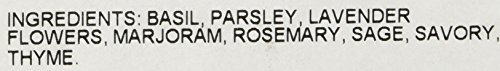 - Flavorful blend of basil, parsley, rosemary, thyme, savory, marjoram, sage, and lavender flowers