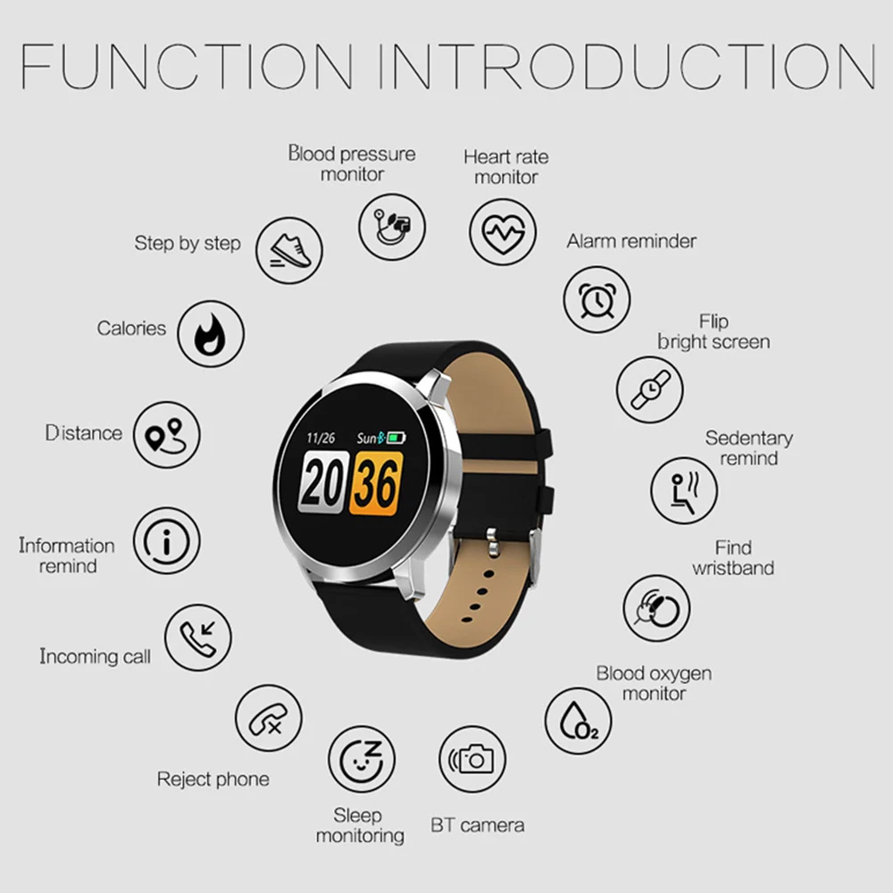 Function:Passometer,Sleep Tracker,Calendar,Heart Rate Tracker,Alarm Clock,Fitness Tracker,Message Reminder,Call Reminder
