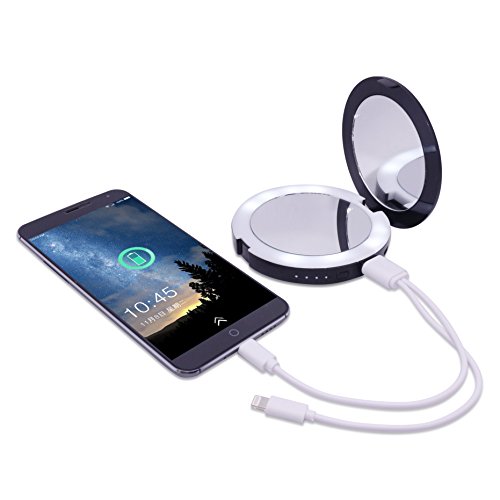 COMPACT AND LIGHTWEIGHT - Small size (3.5*3.5*0.7 inch) and lightweight (124g / 4.3oz), easily fits in your palm, pocket, purse or handbag and take it anywhere you are going for use as a travel mirror and an external battery backup pack.