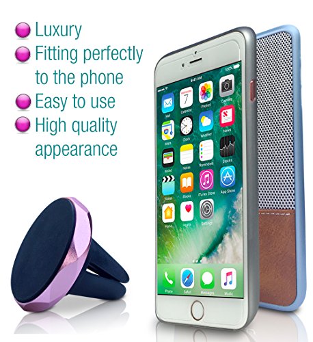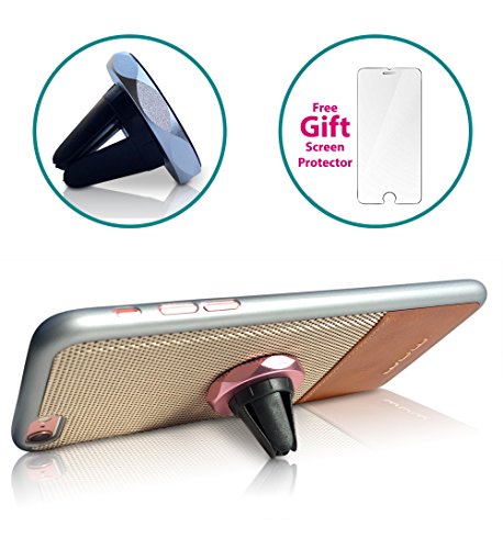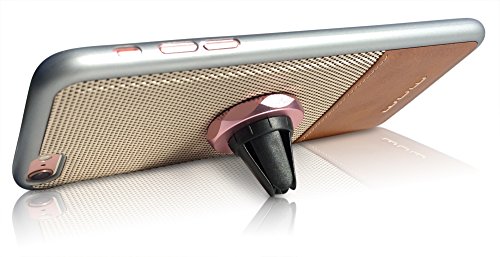 Finduq iPhone 7-Plus Leather Case [Brown], Magnetic Car Mount (All-in-One Design) – Air Vent Smartphone Holder – Travel Ready, Form-Fitting Cellphone Cover