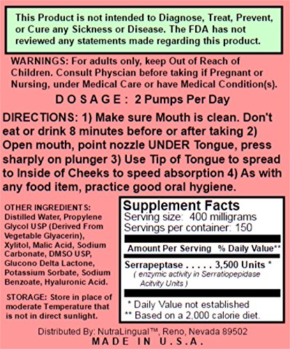 -. Title : Anytime Serrapeptase—High Potency—3500 Units (Equivalent to 120,000 Units Oral Dose), Premium 150 DAY Sublingual Liquid Supplement --TAKE ANYTIME, NO FASTING OR EMPTY STOMACH REQUIRED!!!!