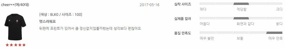 | 치수 | 실측(100)사이즈(cm)-가슴둘레112 어깨너비47 소매길이25 총장69 |