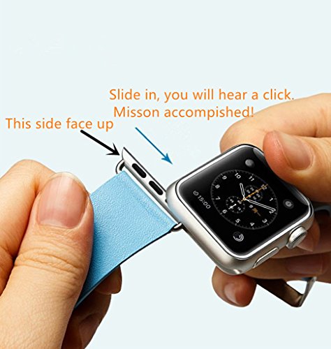 -. Binding : Wireless Phone Accessory -. Brand : Boonix -. Feature : Premium Genuine Calfskin Leather Band with Stainless Metal Clasp. Perfectly fits for Apple Watch & Sport & Edition Version. / Easy Replacement: Metal connection adaptor with original stainless steel material is included and ready for band interchange. Just slide into the apple watch slots. No Tools Needed at all. / Top quality calfskin leather at both outside and inner side. Healthy and soft feel for your skin. / Fine Adjustment: 10 Pin Holes for fine tuning and comfortable wearing. / Superior Craftsmanship: High End Material. Perfect fit. -. Label : BOONIX -. Manufacturer : BOONIX -. PackageQuantity : 1 -. ProductGroup : Watch -. ProductTypeName : WIRELESS_ACCESSORY -. Publisher : BOONIX -. Studio : BOONIX -. Title : Apple Watch Band, Boonix Top-grain Luxury Genuine Leather Loop w/ Metal Clasp for Apple Watch All Models, Sweat-resistant Pre-assembled Easy Replacement