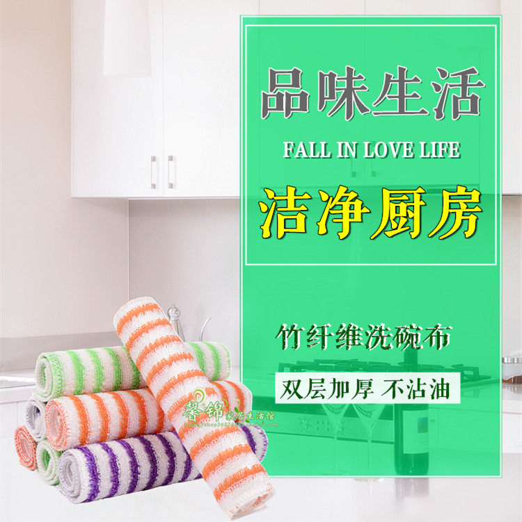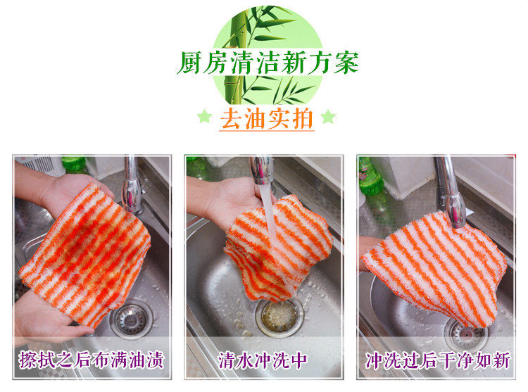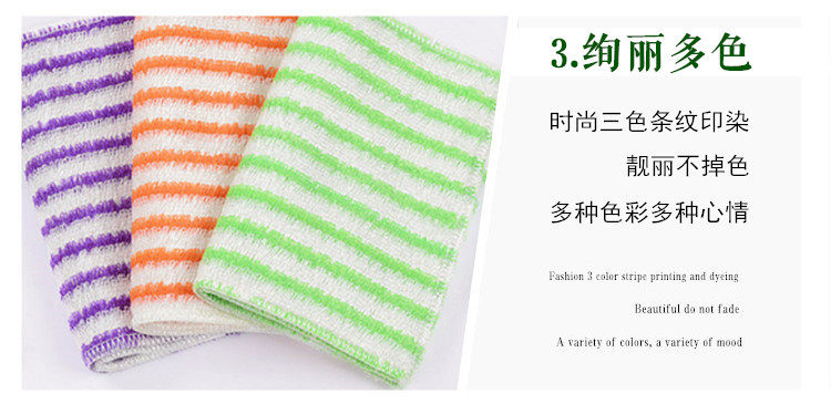 10条装条纹款洗碗布长毛圈不沾油易清洗厨房抹布吸水不掉毛洗碗巾