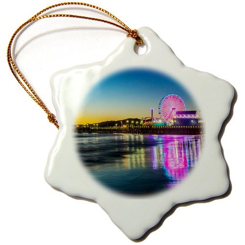 -. Title : Wild Bramble 3-Inch Porcelain Snowflake Decorative Hanging Ornament, Usa, California, Los Angeles, Santa Monica Pier Twilight