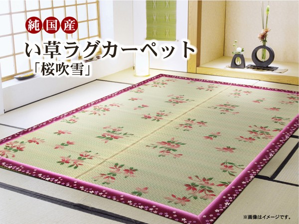 【商品名】純国産/日本製 袋織 い草ラグカーペット 『桜吹雪』 約176×230cm