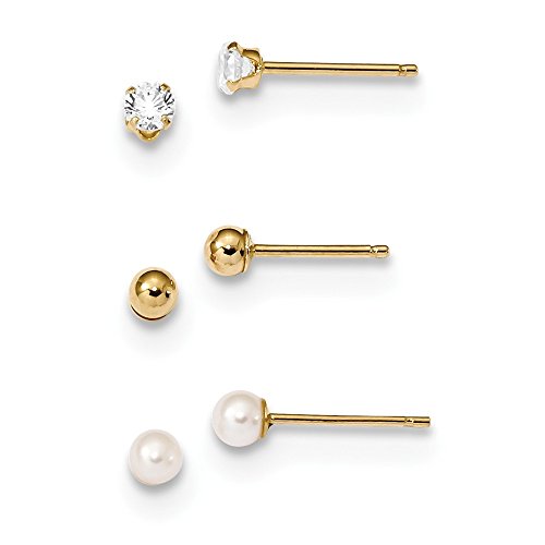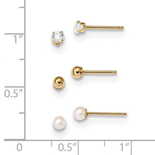 14k Madi K 3 Pair Set-Ball, CZ & Freshwater Cultured Pearl Earrings