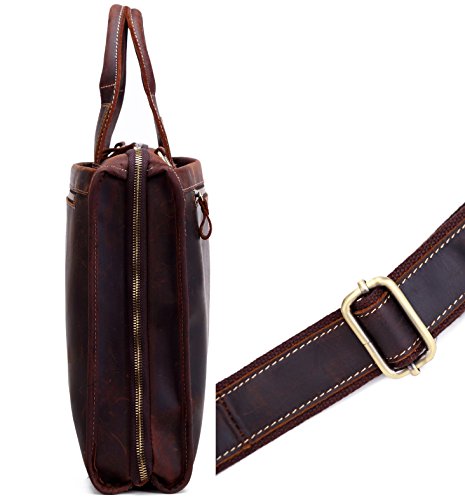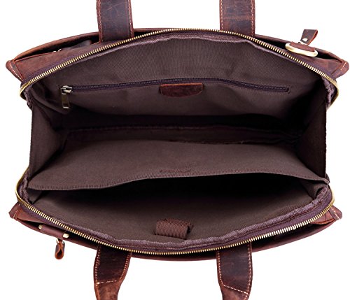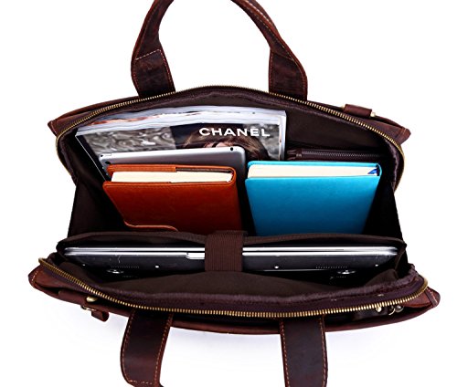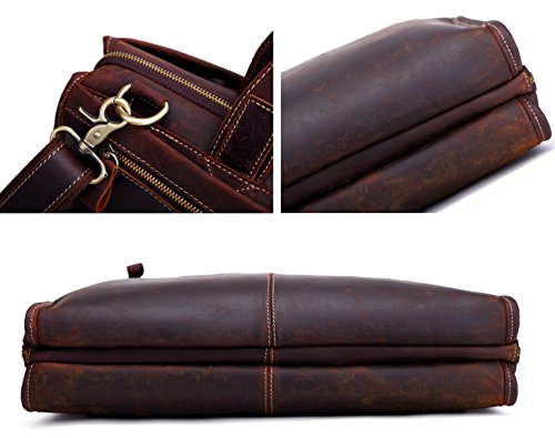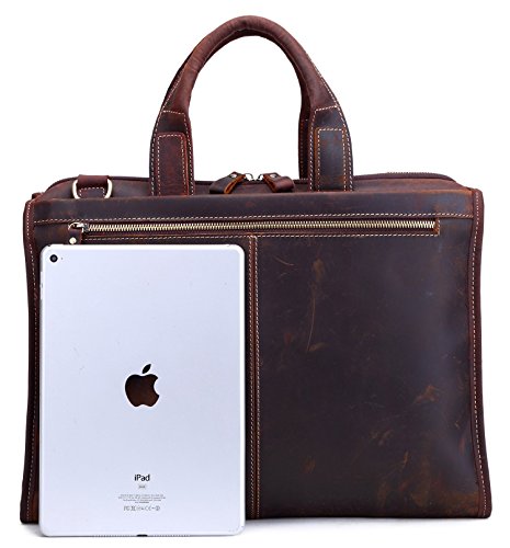 -. Title : Men's Laptop Messenger Bag, Berchirly 15.6 Inch Men Leather Shoulder Computer Work Bags Tote- 100% Top Layer Crazy Horse Genuine Cow Leather Briefcase-Brown - Large Capacity