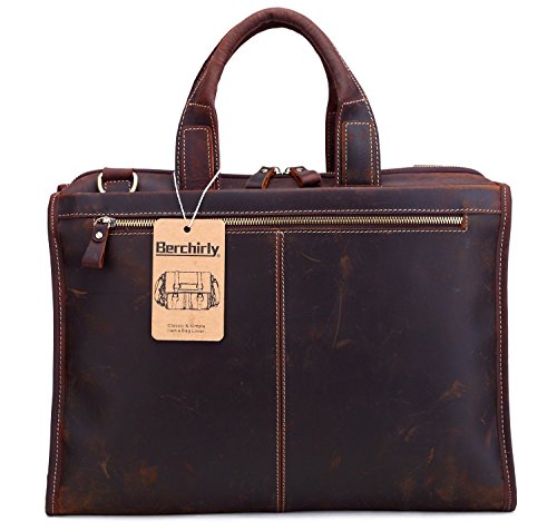 -. Feature : High quality material - This laptop business briefcase uses imported 100% real Leather and decorated with elegant bronze buckles and high density satin silk lining. Sturdy top handle Removable, adjustable and padded shoulder strap / Large Capacity & Maximum Security is Guaranteed - This designer leather bag is made with 6 zipper pockets: 1x large main compartment with a small zip-way pocket fits for 15.6 inch laptop, 1x zip-way back pocket, 1x zip-way front pocket, 2x inner zip-way pocket. It is the most secure leather bag on the market with high utility. With Dimension: 15.75" x 12" x 3.5" (Weight: 3.5 lbs) fits for laptop 13.3", 14", 15.6inch. / Multiple Carrying Options - With removable, adjustable padded shoulder strap, you can carry it as cross-body shoulder bag; With comfortable and durable 100% leather top handle, you can take it as a handbag for everyday use. It is a necessity for business, travel or school. / RISK-FREE & Friendly Customer Service: Customer 100% satisfaction is the first P.R.Ior for our business, if you encounter a problem about this Men's Laptop Messenger Bag, just contact us for a replacement or refund. NOTE: As crazy horse leather it may has scratches in some places which is to make it more vintage this is natural and normal, hope you know it before buying. / Kim's Republic is SOLE Berchirly brand seller ! ONLY products purchased from Kim's Republic are covered with Berchirly warranty. Otherwise, it is fake product and please contact amazon or us for help.