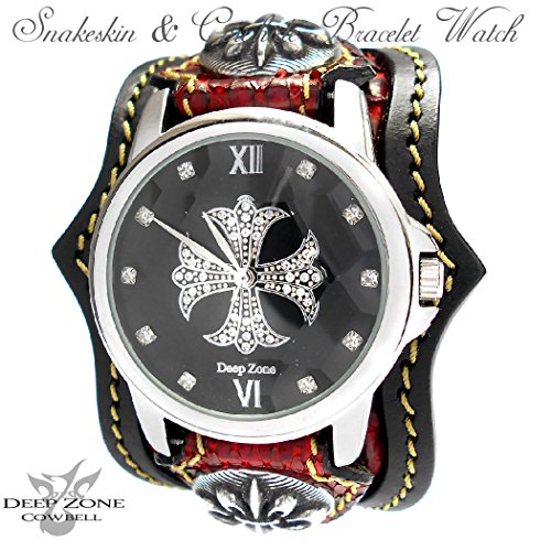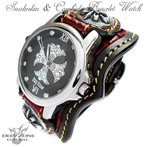 DEEP ZONE 손목시계 맨즈 뱀 가죽X소가죽 벨트 breath 워치 지르코니아 크로스 문자판 백합 꼰초 CWLBW-008