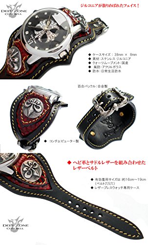 원본상품명: 腕時計 メンズ ヘビ革X牛革 ベルト ブレスウォッチジルコニアクロス文字盤 百合コンチョ CWLBW-008