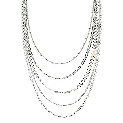 Five different styles of chain are combined for the layered look and lots of sparkle. Cable chain with periodically spaced beads extends the necklace with a single clasp for easy wear. The other chain styles are flat 3+1 links, flat diamond-links, figaro 3+1 and diamond-cut oval cable. Entire necklace is 925 sterling silver imported from Italy. Finishing - 925 sterling silver spring ring clasp. See Joyful Creations storefront for matching earrings. Gift box included, color or style may vary.Feature