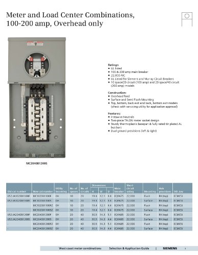 Siemens MC1020B1100S 10 Space 20 Circuit 100-Amp Surface Mount Meter Load Center Combination with Ring Type Cover