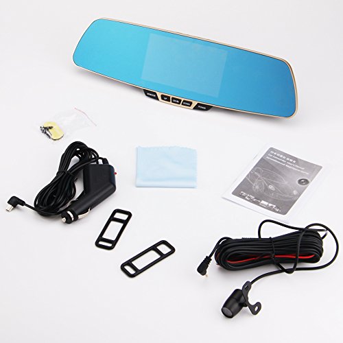 -. Title : Car Rear View Camera, Dual-lens Vehicle AUTO Cameras Mirror, Dash Cam Front and Rear DVR Full HD 1080P 170°Wide Angle Large Rear View Mirror with 5.0 Inch Display Screen