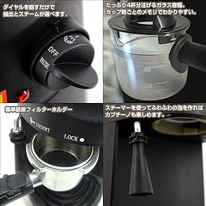 取り外しできる受け皿やコーヒーかすを捨てやすいフィルターホルダーなど使いやすい設計なので初めてのエスプレッソマシンにぴったり