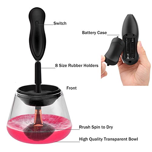 The Makeup Brush Cleaner can clean and dry cosmetic brushes in 10-30 seconds, removing the dust and the leftovers of makeup products.