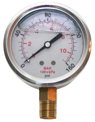 -. Feature : Liquid filled pressure gauge / Stainless steel construction, 0-160 psi / 2.5-inch face/dial / 1/4-inch male NPT connection