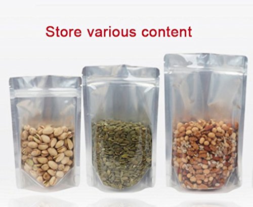 Assorted Sizes Airtight High Barrier Recloseable Zip Seal Stand Up Pouch Bags for Food Herbs Medicine Pills Powder Storage (Front Clear + Back Foil) (20, 10 x Medium +10 x Large)