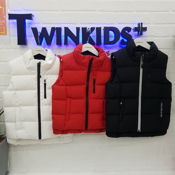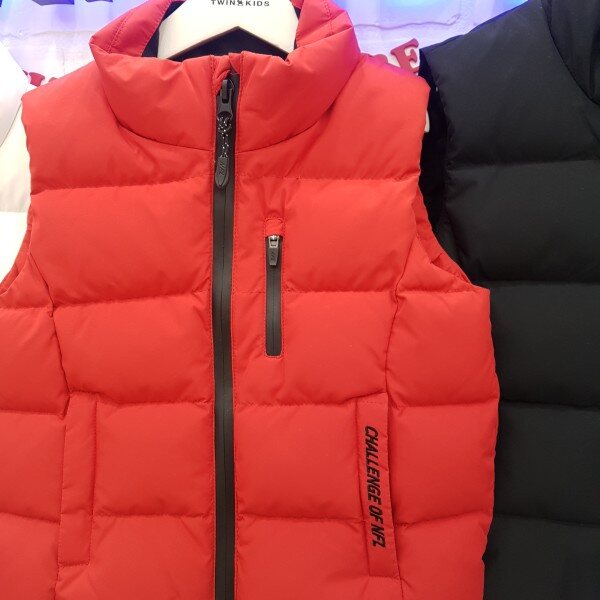 지퍼와 레터링 자수로 깔끔하게 포인트를 준 공용 오리털 화섬조끼 포켓 안,뒤,목 안쪽에 라이렉스 기모를 덧대주어 따뜻하게 착용 가능