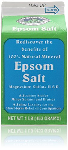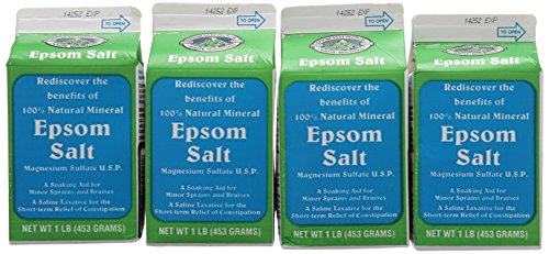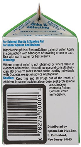 -. Binding : Health and Beauty -. Brand : WHITE MOUNTAIN -. EAN : 0794438030127 -. Feature : 4 container's each 1 lb. total 4lb. / 100% Natural mineral Epsom salt - magnesium sulfate / A sparkling for minor sprains and bruises / A saline laxative for the short-term relief of constipation / The trusted natural remedy you can use every season of the year -. IsAdultProduct : 0 -. Label : White Mountain -. Manufacturer : White Mountain -. Model : WHM-00001 -. MPN : WHM-00001 -. NumberOfItems : 4 -. PackageQuantity : 1 -. PartNumber : WHM-00001 -. ProductGroup : Beauty -. ProductTypeName : BEAUTY -. Publisher : White Mountain -. Size : 16 Ounces -. Studio : White Mountain -. Title : White Mountain Epsom Salt Container, 1 lb/16 oz, 4 Piece -. UPC : 794438030127