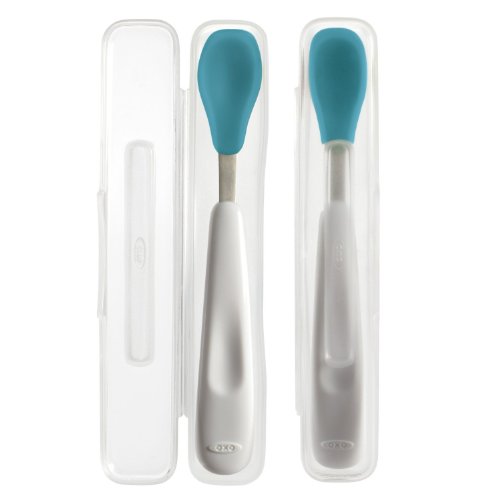 -. Binding : Baby Product -. Brand : OXO -. Feature : Case conveniently stores Feeding Spoon for on the go meals and the compact size is perfect for diaper bags and handbags / Silicone spoon feels soft on baby's mouth and gums; Spoons contoured handle is angled for easy feeding / Silicone edge on spoon is soft yet effective for scraping food from bowls, jars or messy faces / Spoon is shaped for easy scooping and the shallow spoon head prevents feeding too much at once / Set of 2 -. Label : OXO -. Manufacturer : OXO -. PackageQuantity : 2 -. ProductGroup : Baby Product -. ProductTypeName : BABY_PRODUCT -. Publisher : OXO -. Studio : OXO -. Title : OXO Tot On-the-Go Feeding Spoon - Set of 2