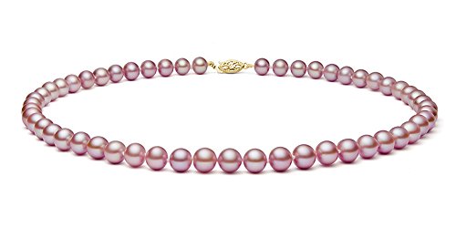 This elegant pink freshwater cultured pearl necklace has luminous tones. It is knotted in-between each cultured pearl and finished with a beautiful 14k gold clasp. These cultured pearls are extra fine AAA quality, with high luster and clean surface. This jewelry is hand made by our skilled jewelers in USA and quality controlled strictly by our cultured pearl experts. It comes with a high quality jewelry box and a certificate of authenticity.