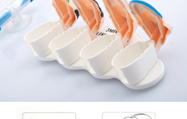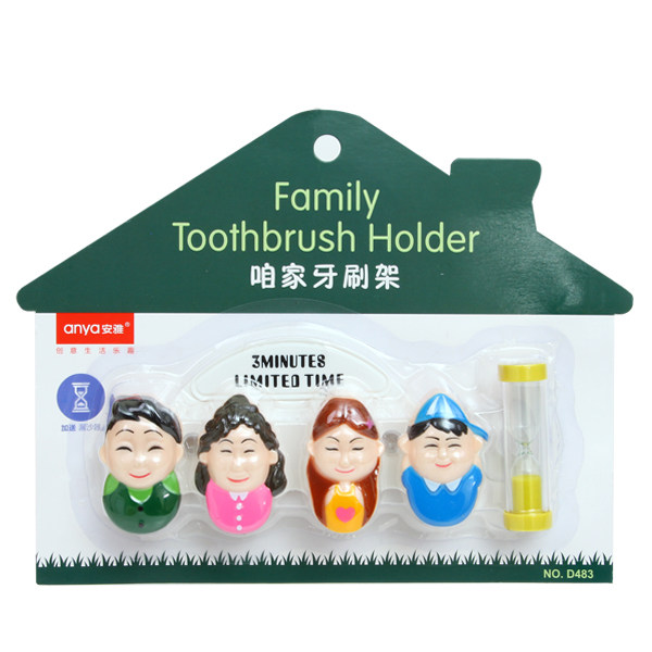 | Product Description | Our family toothbrush holder, for a happy family of four, parents siblings modeling, vivid color-rich, easy to distinguish identification, brushing with a small funnel computing, scientific brushing time is three minutes, with a small funnel, and then do not worry about brushing time, ABS products using environmentally friendly materials, with impact resistance, impact, bright color, each about three holes, drain and ventilation, health and safety, allowing you to follow your family's teeth healthy, easy to install back with PVC sucker, sucker adsorption smooth surface, easy to fall off, give you more confidence. |