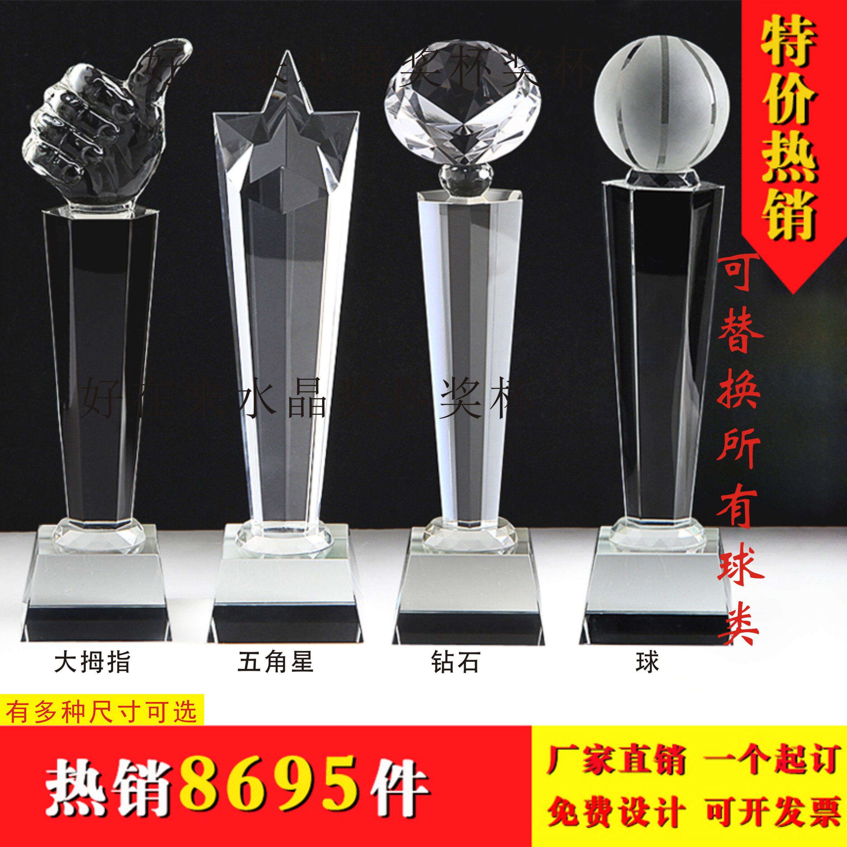 我们水晶奖杯是纯手工打造,尺寸有些许误差属于正常现象,(一般正负5毫米)对尺寸比较在意的亲们请慎拍。