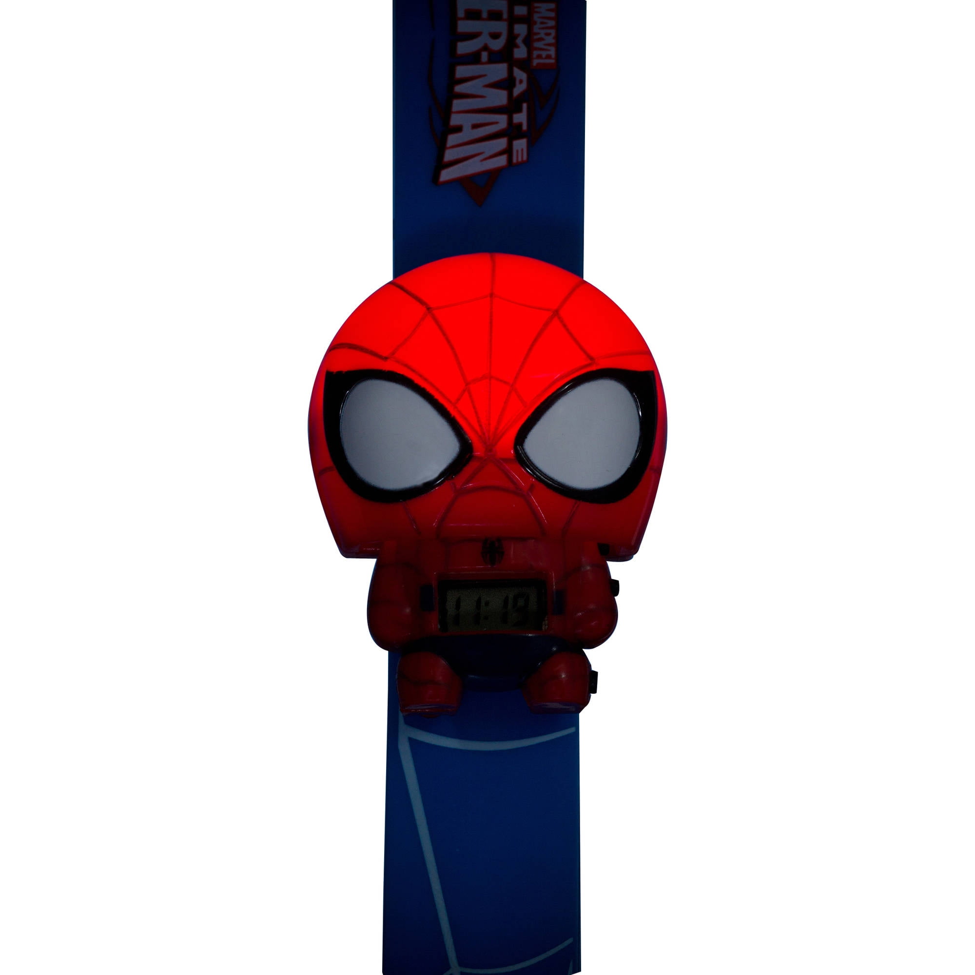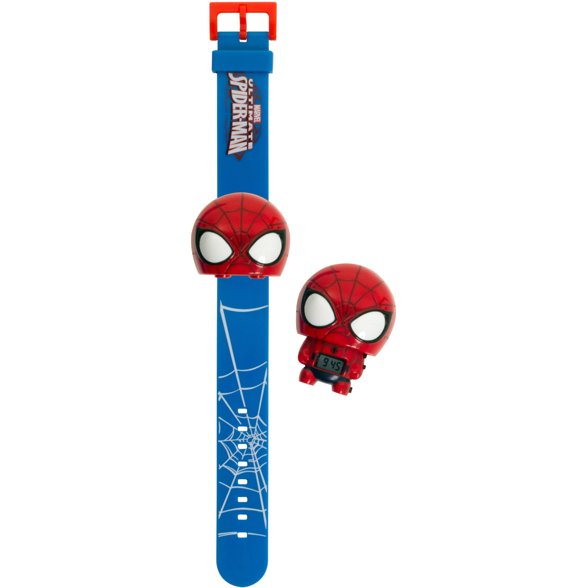 Be a part of the action with a DC kids Spider-Man watch from BulBotz. This cool minifigure watch features a Spider-Man shaped case and highlights a digital LCD display. A matching PU strap secures with a classic buckle to finish the design. BulbBotz DC Kids Spider-Man Light-Up Watch: