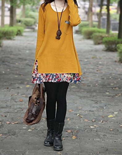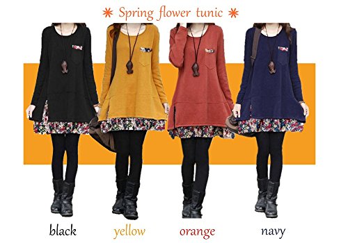-. Feature : シンプルカラーと可愛い小花柄のレイヤード風ゆったりチュニック。 / 重ね着風だけど薄手素材なのでゆったりふわっとした着心地です。 / 両サイドのスリットから見える小花がとってもキュート♪ / カラー : ブラック / ネイビー / イエロー / オレンジ サイズ : M、L、XL