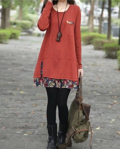 -. Title : (シント・エム) ShintoM 重ね着 風 シンプルカラー 花柄 Aライン ゆったり チュニック
